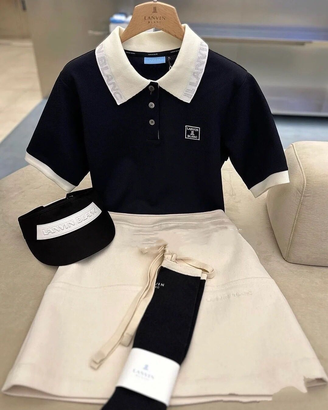 LANVIN BLANC Korea Women's Short-sleeved Collar Top casual golf shirt