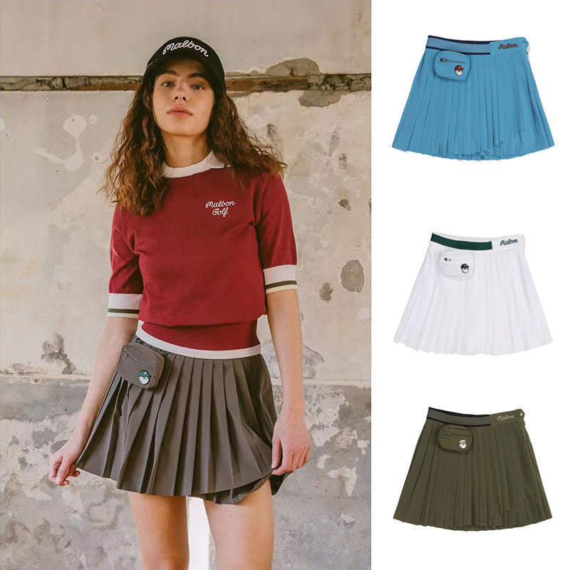 MALBON Korea original Women Golf Skirt, pleated, slim elasticated waist with small ball bag