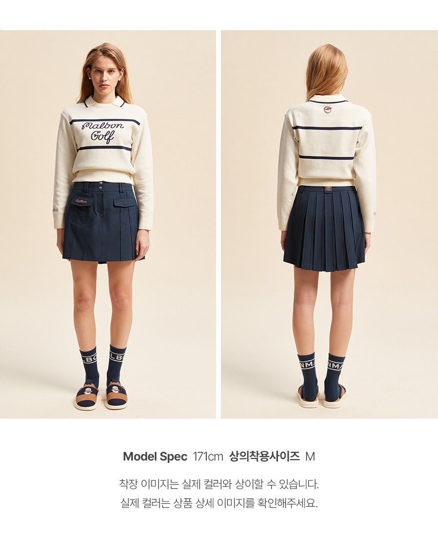MALBON Korea Women FW Long-Sleeve Knitted POLO Shirt Stretch